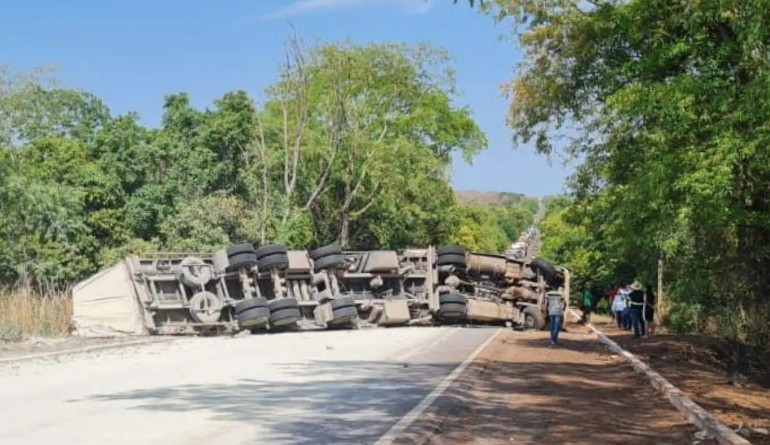 O tombamento de uma carreta que transportava cimento, provoca a interdição da BR-262 no km 412, pr0ximidades de Terenos. Conforme a Polícia Rodoviária Federal – PRF, que está atendendo a ocorrência, um dos ocupantes saiu ileso e o outro sofreu lesões leves.