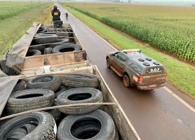 Policiais militares do DOF (Departamento de Operações de Fronteira) apreenderam, na tarde desta terça-feira (13), uma carreta Iveco/Stralis 570, carregada com uma carga de pneus avaliada em mais de um milhão de reais. A apreensão ocorreu no município de Ponta Porã e o condutor, homem de 34 anos, foi apanhado em flagrante.