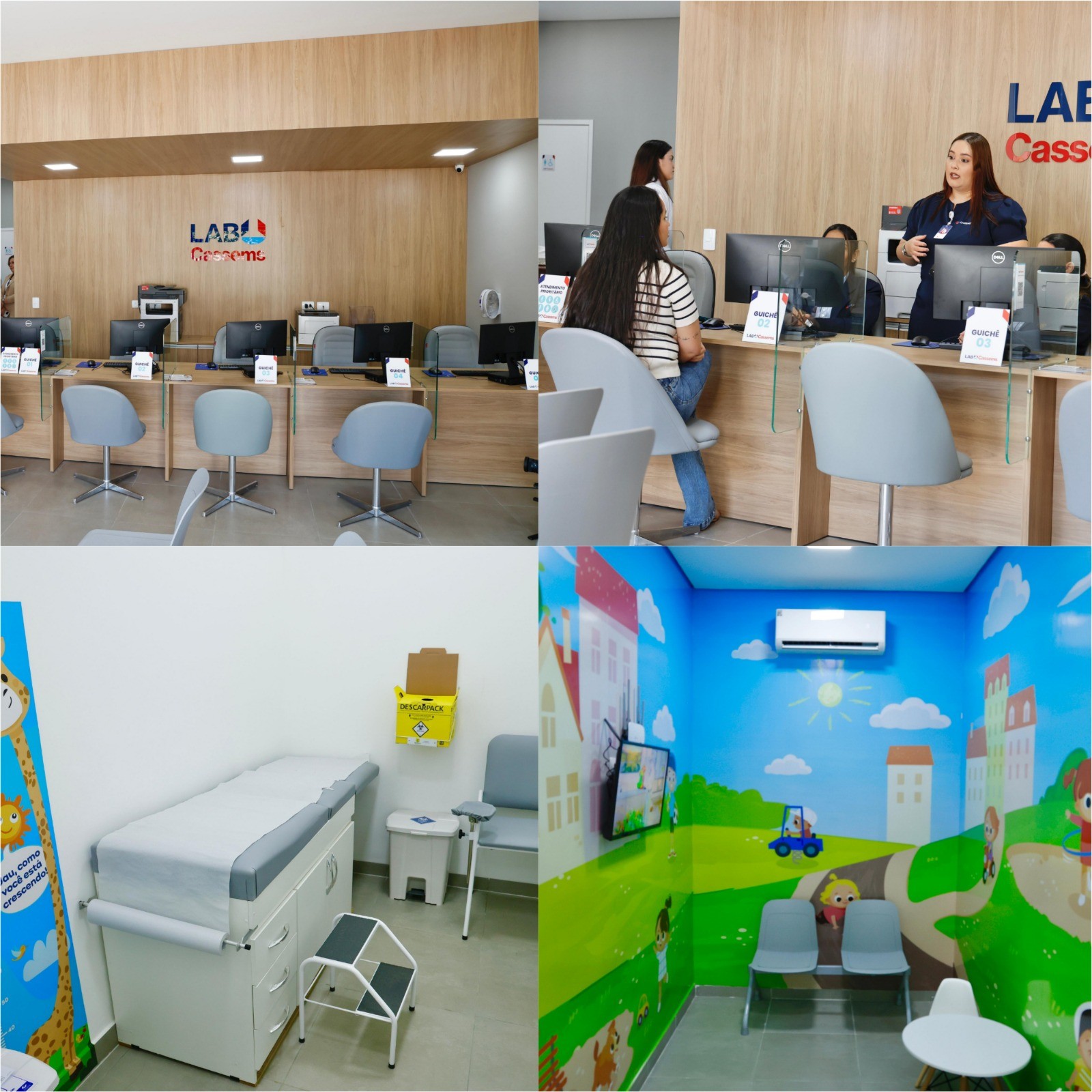 O Lab Cassems oferece um amplo portfólio de exames, que vai dos mais comuns aos de alta complexidade. A estrutura inclui espaços como salas de coleta pediátrica com temas lúdicos, Espaço Kids e um “certificado de coragem” para as crianças.